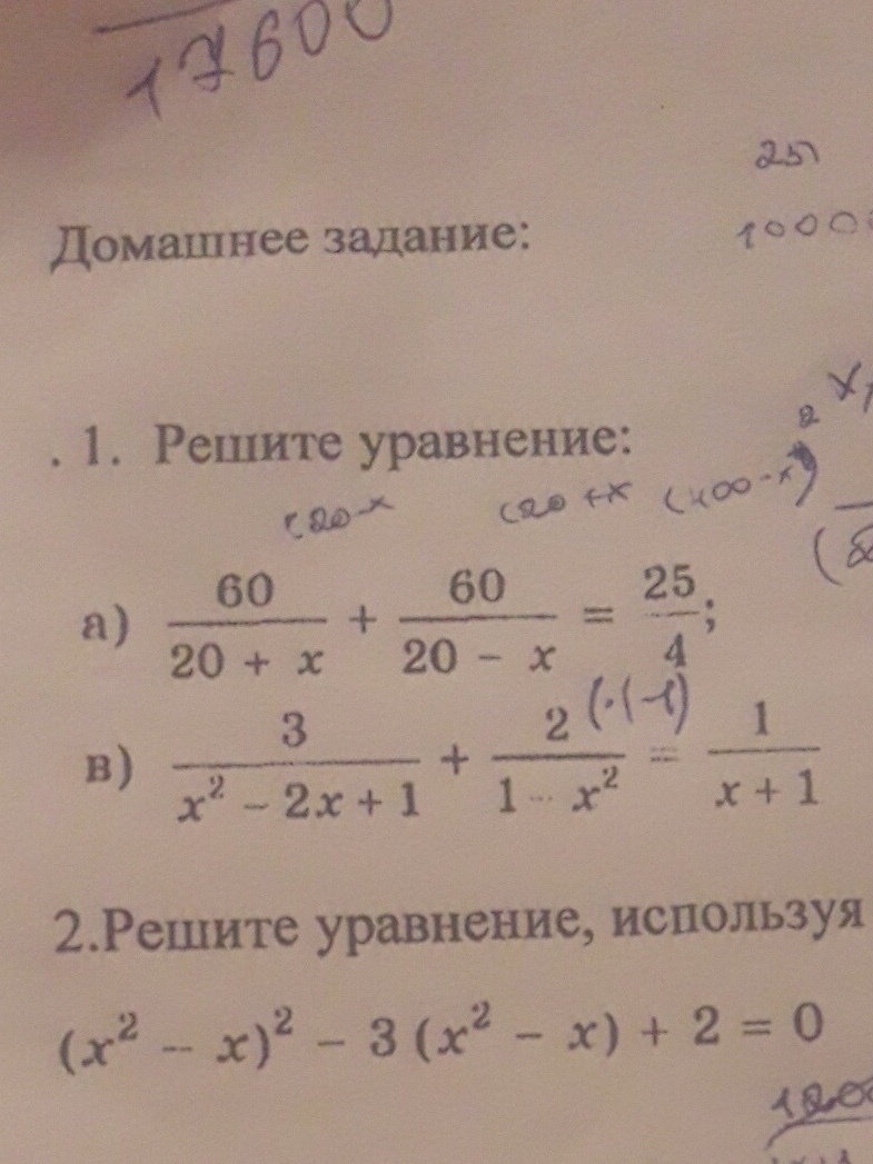 (60(20-х)+60(20+х)) / ((20+х)(20-х)) = 25/4