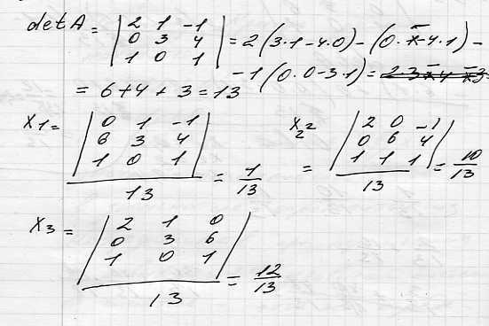 Помогите, пожалуйста, решить систему уравнений по методу Крамера (2 задание пример под буквой "а")