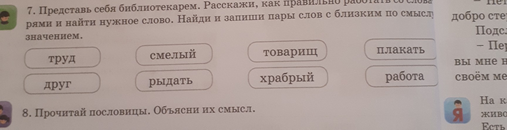 Труд - работа. Друг - товарищ. Смелый - храбрый. Рыдать - плакать.