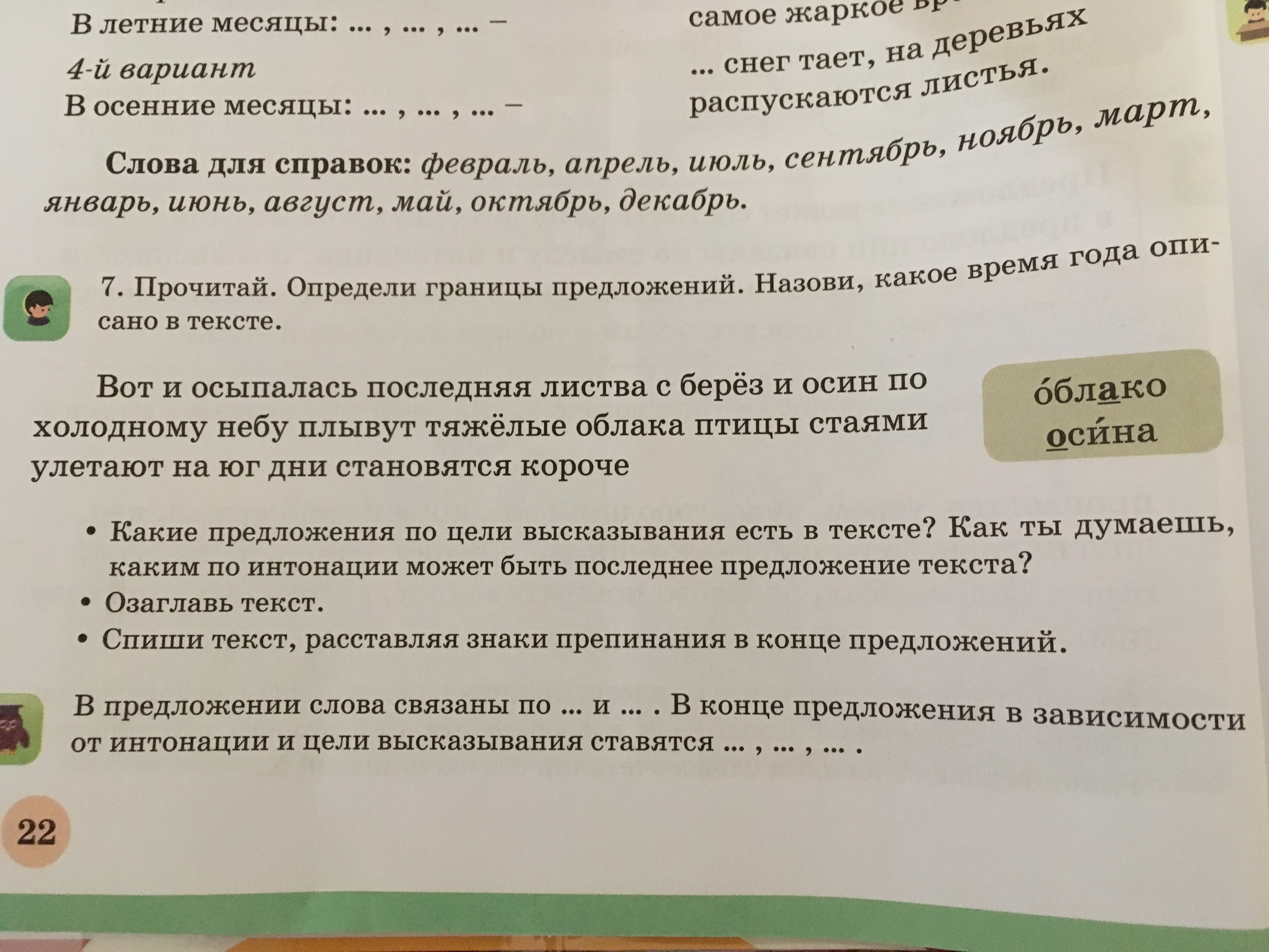 название Осень . осин. облака. на юг. короче. после этих слов ствь точки