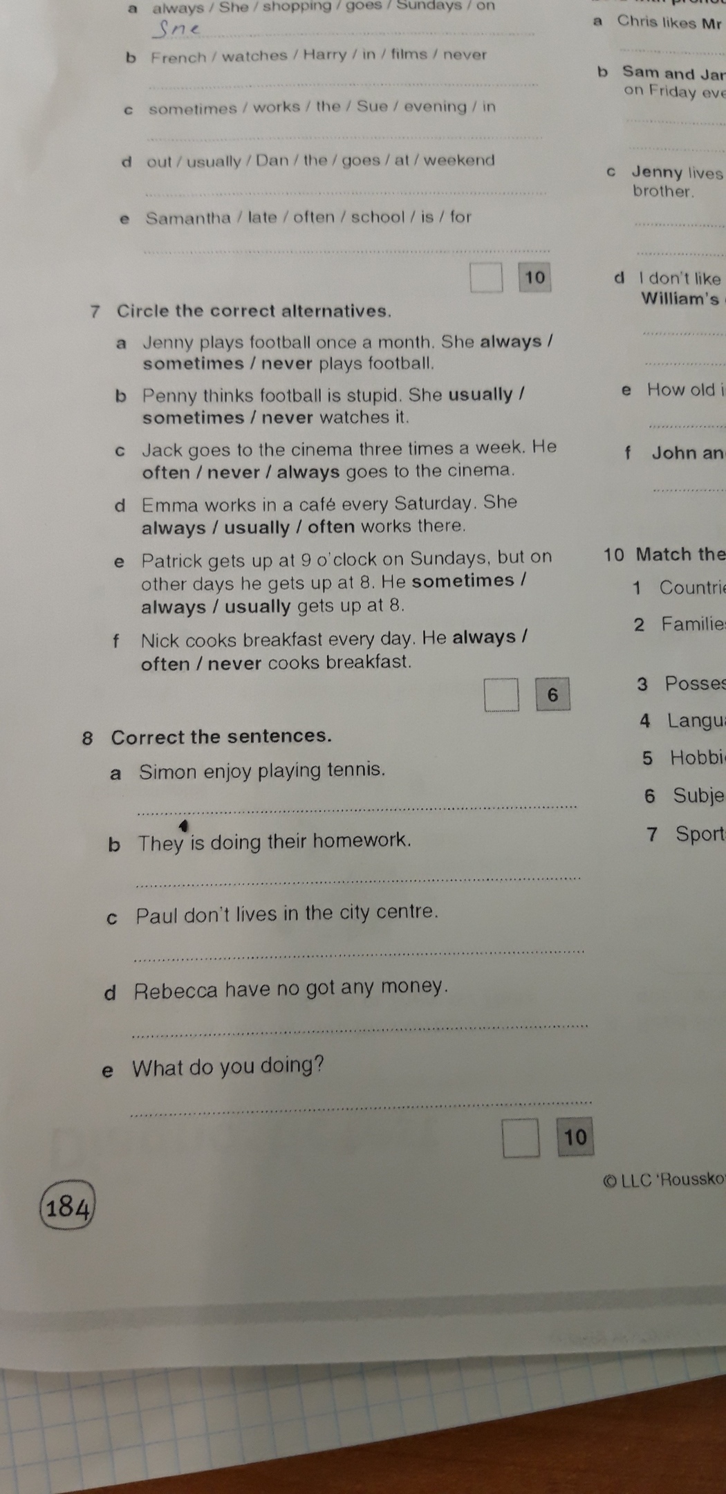 Simon enjoyS playing tennis. They ARE doing their homework.Paul DOESN’T live in the city centre.Rebecca HAS got no money. What ARE you doing?