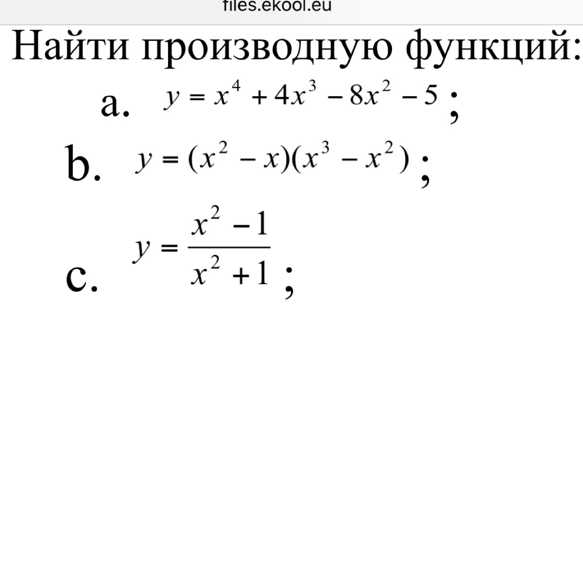 а. (x4+4x3-8x2-5)' = (x4)' + (-8x2)' + (4x3)' + (-5)' = 4x3 + (-16x) + 12x2 = 4x3+12x2-16x
