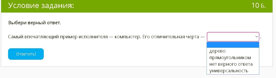 2. Самый впечатляющий пример исполнителя — компьютер. Его отличительная черта —