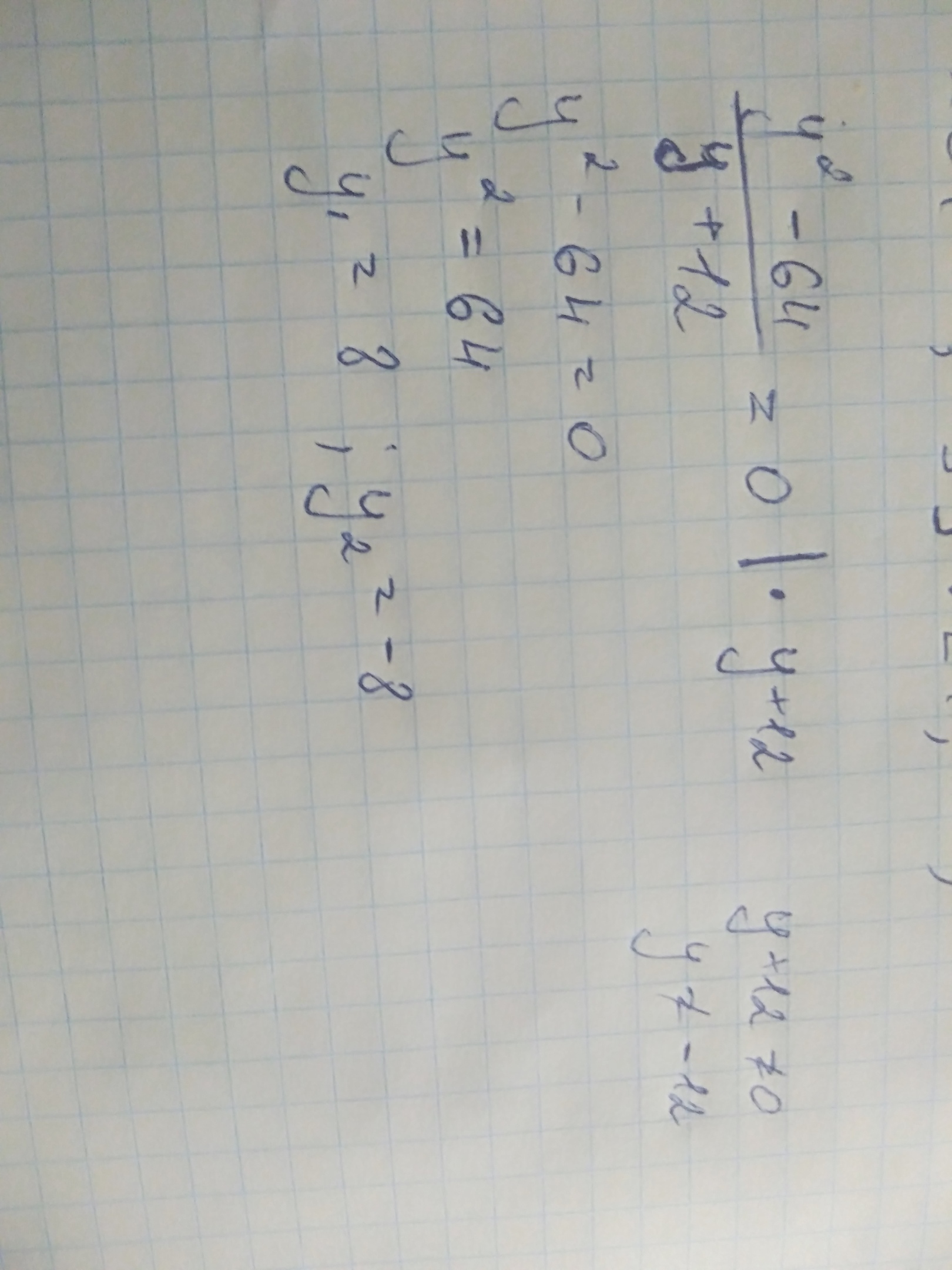 Срочно!!! Пожалуйста!!! Дам 30 баллов!!! Найди значения переменной, при которых равна нулю алгебраическая дробь y^2−64/y+12 Выбери правильный ответ: y=12 y=−64 y=64 y=−12 y1=8,y2=−8