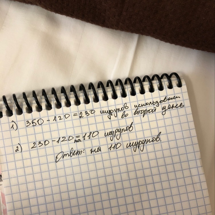 В ящике 350 шурупов. В первый день использовали 120 штук, а остальные во второй.На сколько меньше шурупов использовали в первый день, чем во второй?