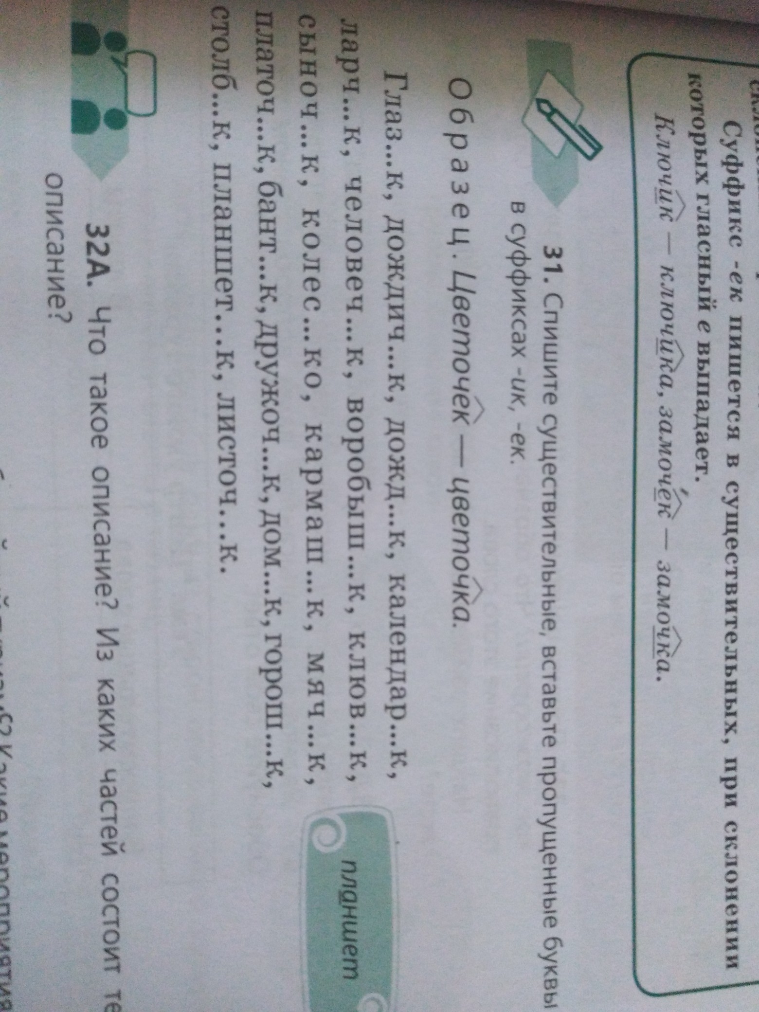 Спишите существительные,вставьте пропущенные буквы в суффиксах -ик - ек