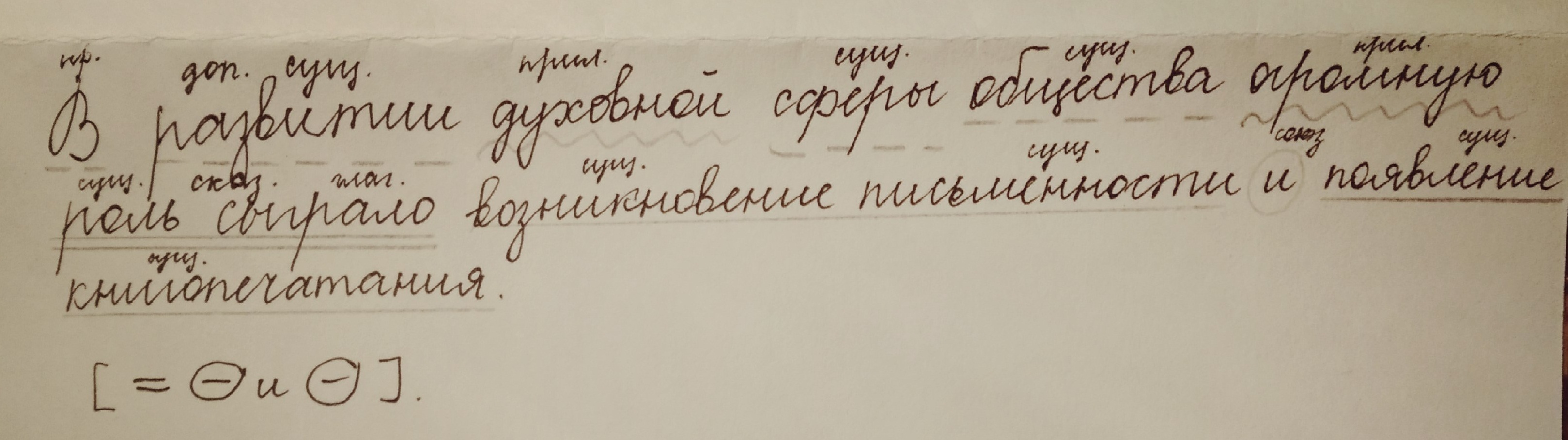 Синтаксический разбор предложения развитии духовной сферы общества огромную роль сыграло возникновение письменности и появление книгопечатания