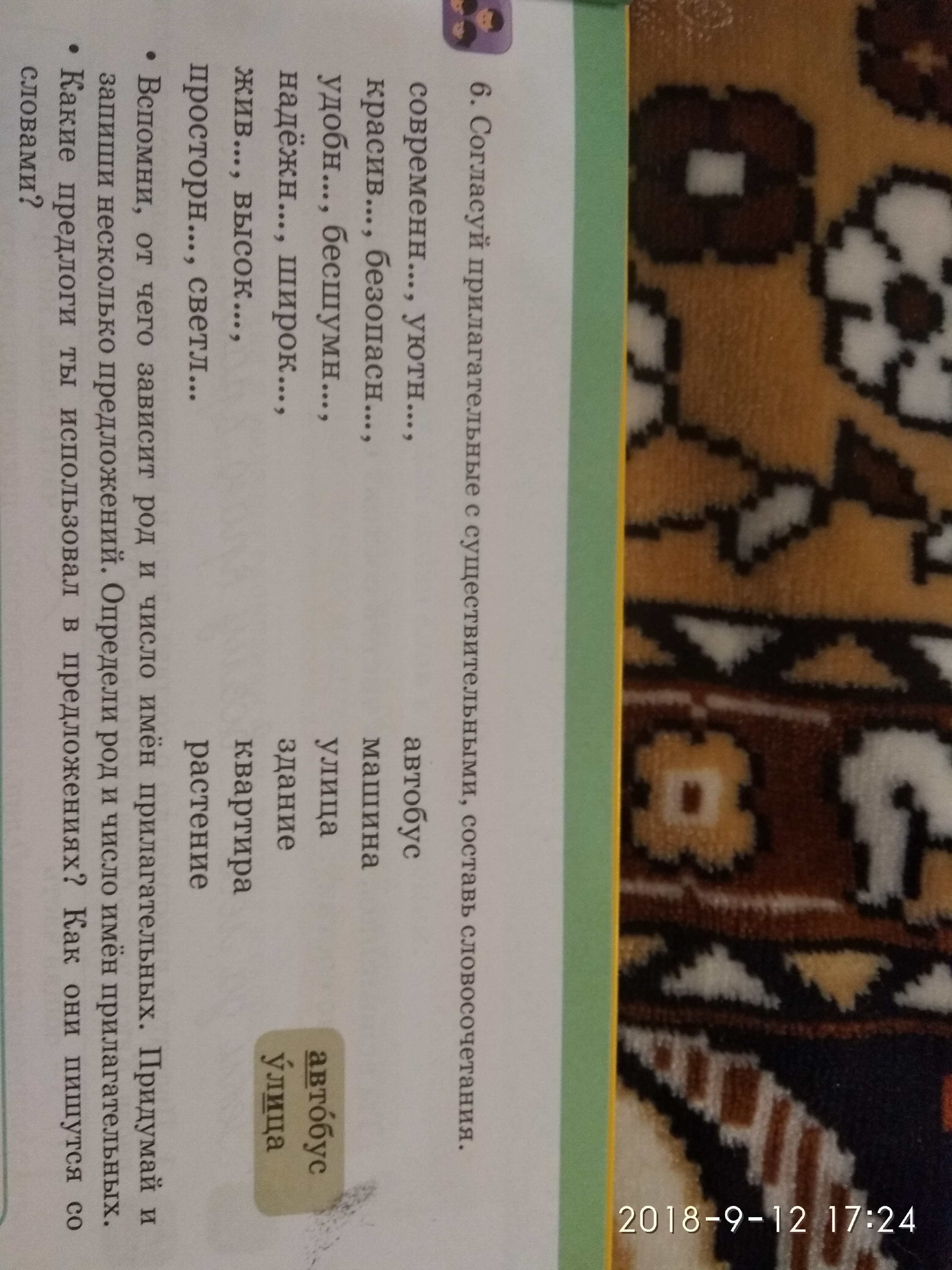 Тут нужно вставить пропущенные буквы и составить словосочетания ,например современный автобус,уютный автобус и тд