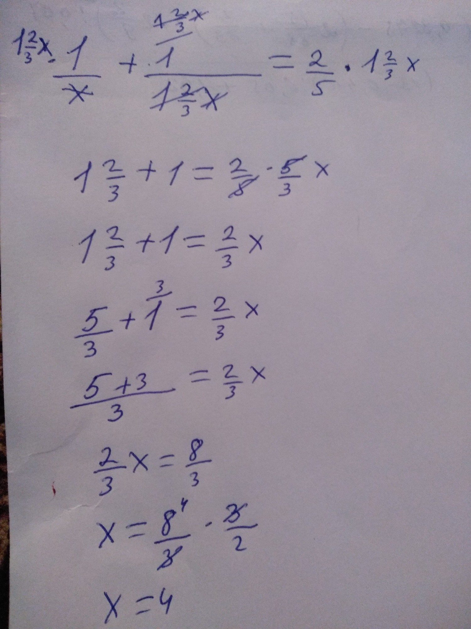 Нужно всё умножить на 1(целая) 2/3x, чтобы избавиться от знаменателей