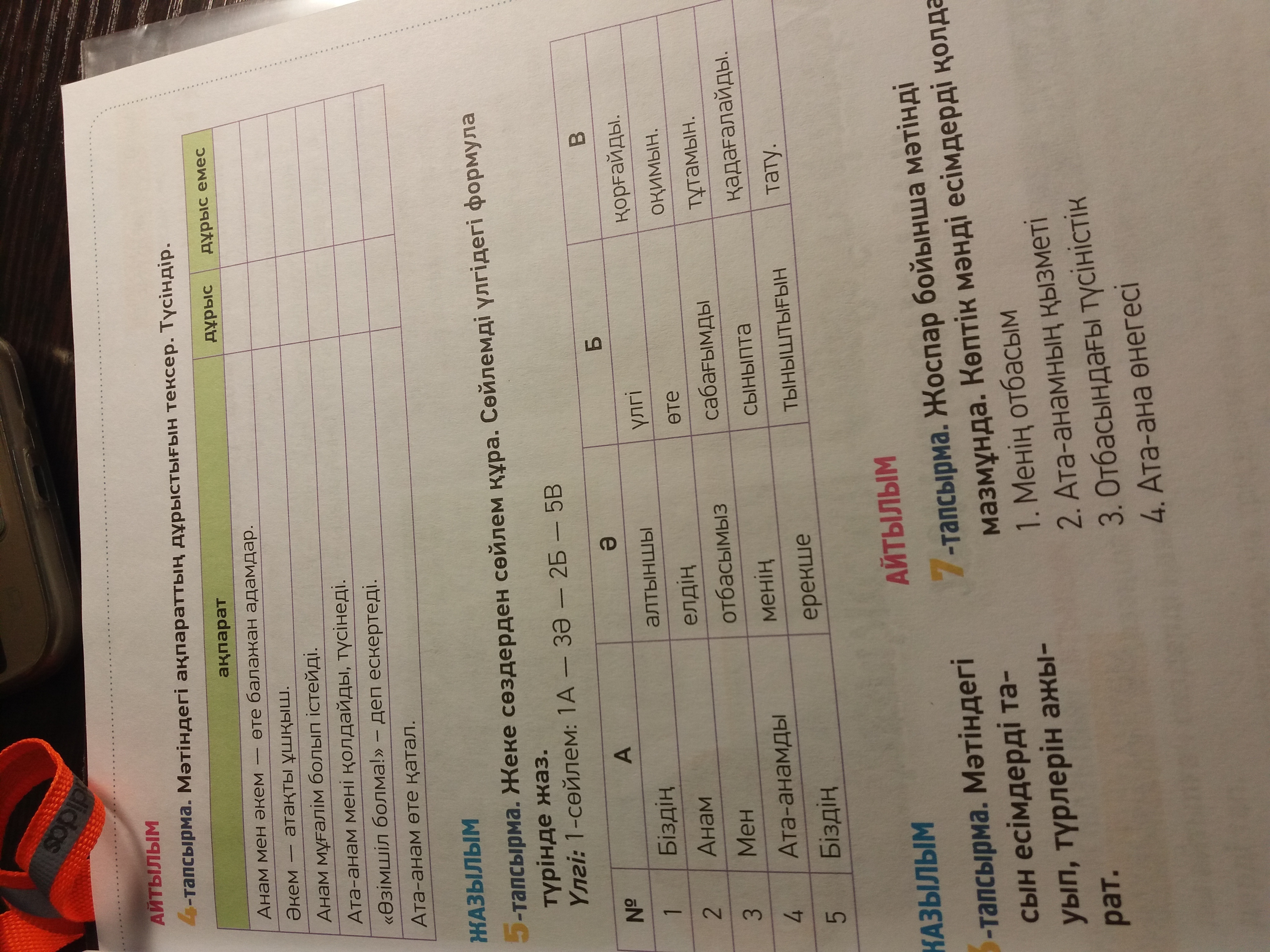 1) Біздің отбасымыз өте тату( 1A; 3Ә; 2Б; 5В)