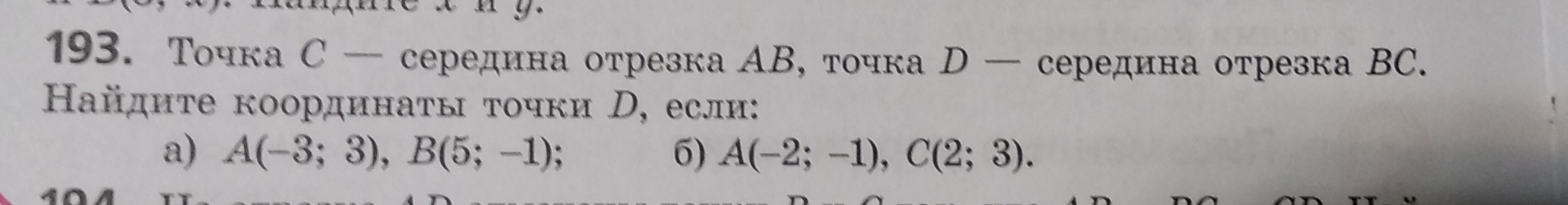 Хс = (Xa + Xb)/2 = (-3 + 5)/2 = 2/2 = 1