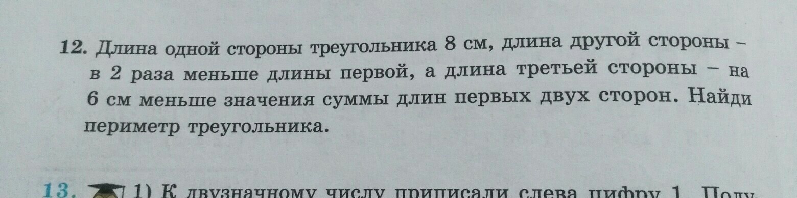 82=4 длина 2 стороны (8+4)-6=6 см длина 3 стороны 8+4+6=18 см пириметр треугольника