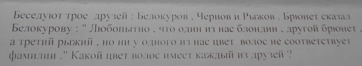 Белокуров - рыжий, чернов блондин,Рыжов брюнет