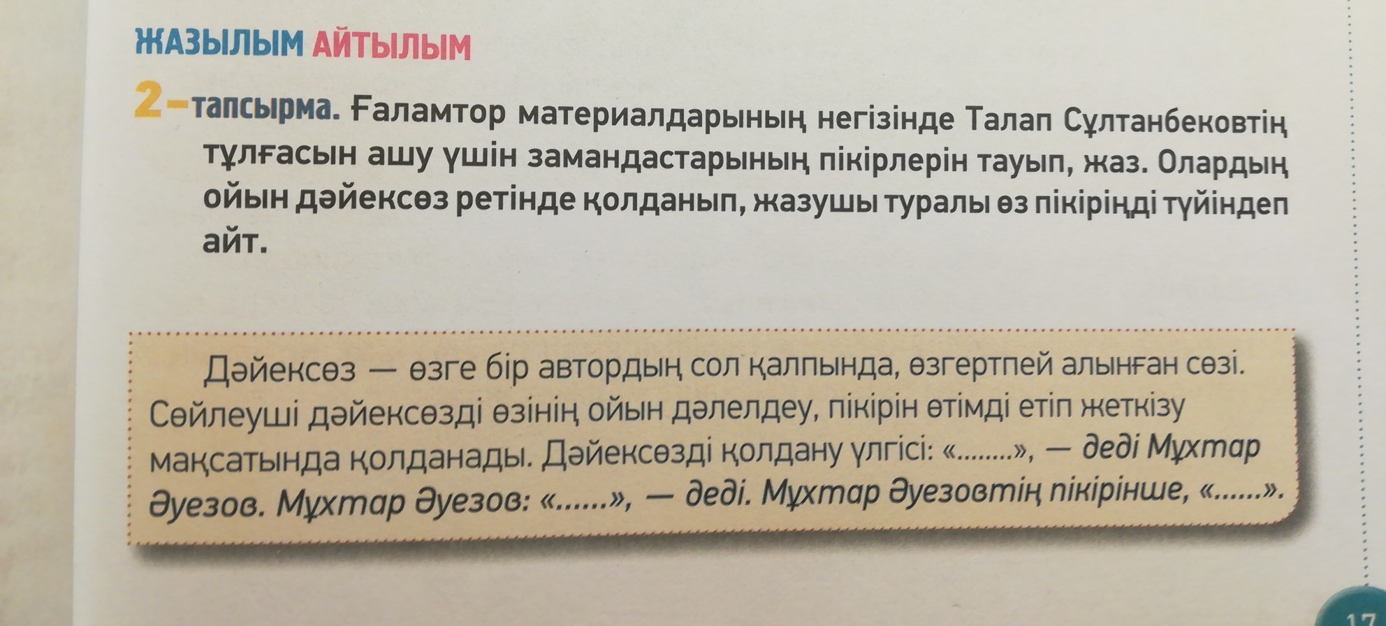 написать про талап сұлтанбек