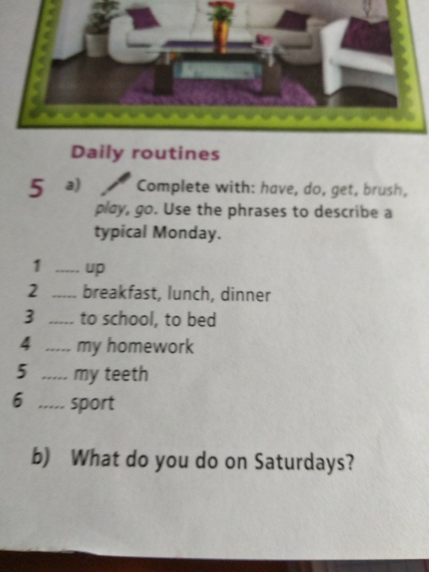 3)go to school,to bed