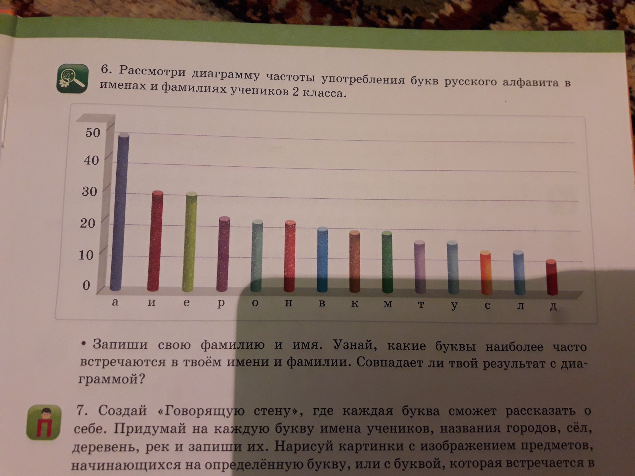 рассморри диаграмму частоты употребления букв русского алфавита в именах и фамилях учеников 2класса