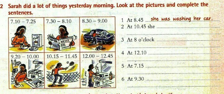 Sarah did a lot of things yesterday morning. Look at the pictures and complete the sentences.