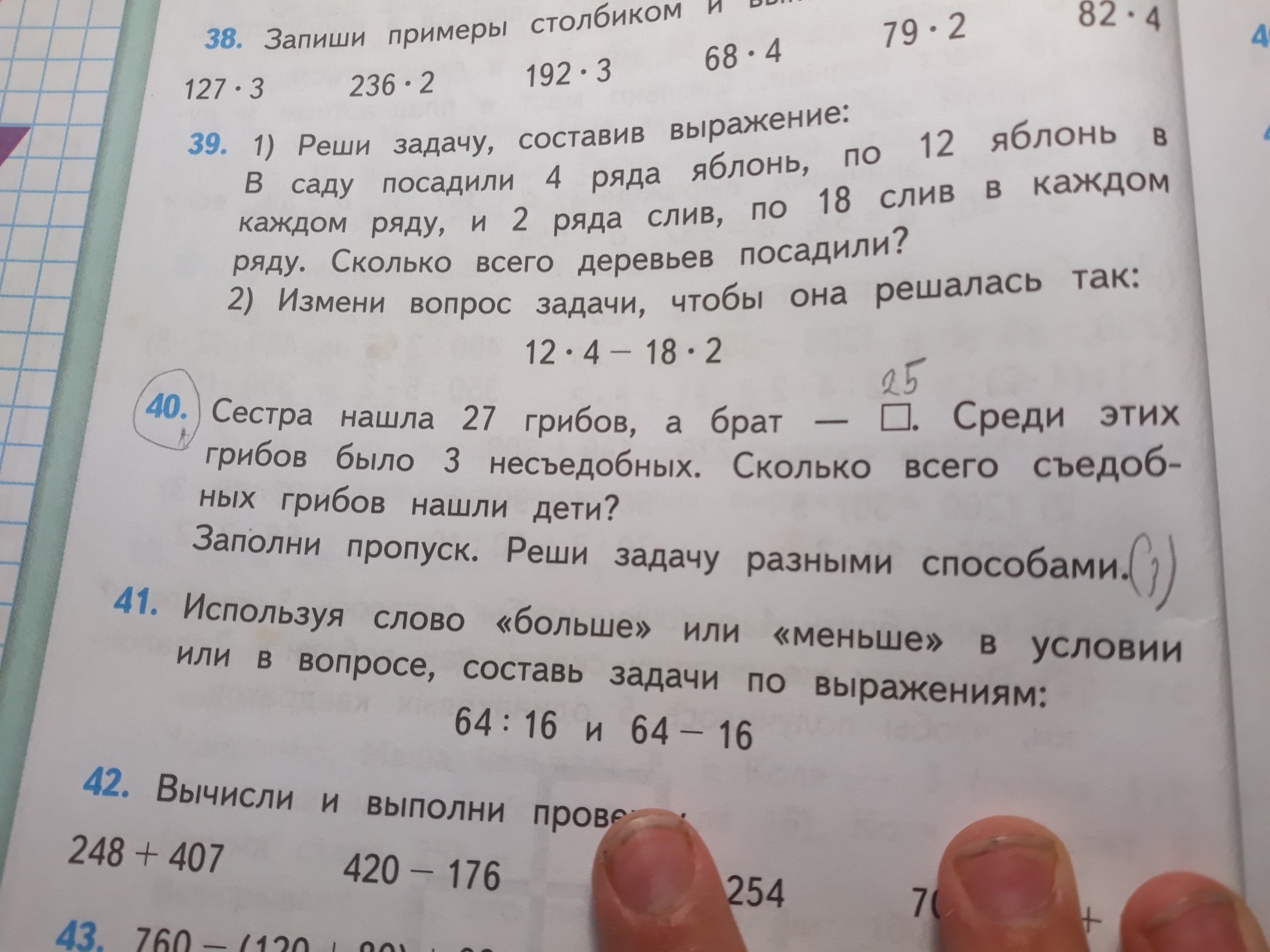 Сестра- 27 съедоб. гр. Брат- 25 съедоб. гр. Среди грибов- 3 несъедоб. Всего съедобных- ?