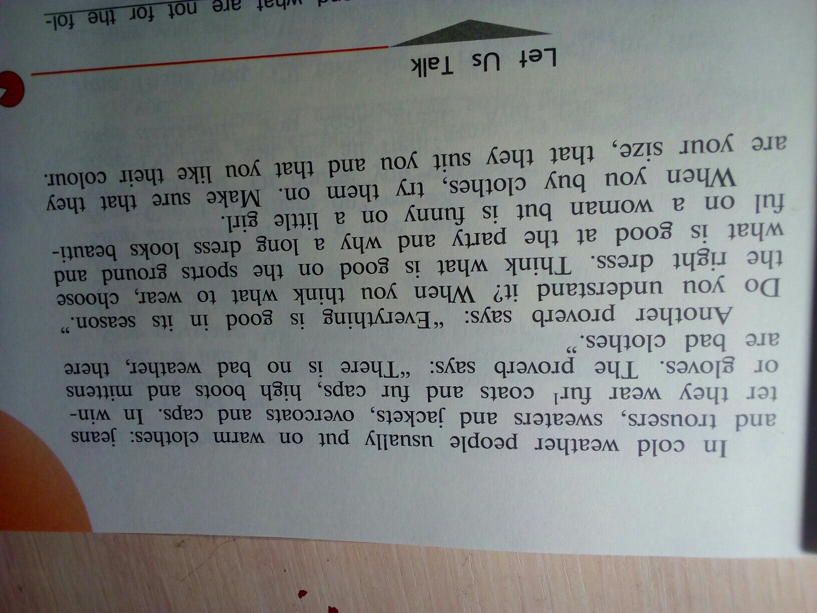 В холодную погоду люди обычно одевают на себя теплую одежду джинсы и брюки свитера и куртки пальто и шапки. Зимой они носят шубы и меховые шапки с высокими сапогами и рукавицами или перчатками. В пословице говорится: «Плохой погоды нет, есть плохая одежда.