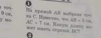 на прямой AB выбрана точка C. известно что AB=5 см, AC=7 см. Какую длину может иметь отрезок BC?
