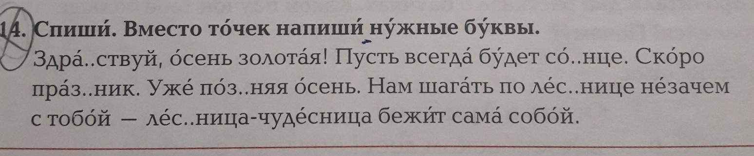 ЗдраВствуй, осень золотая! Пусть всегда будет соЛнце. Скоро празДник. Уже позДняя осень. Нам шагать по лесТнице незачем с тобой - лесТница-чудесница бежит сама собой.