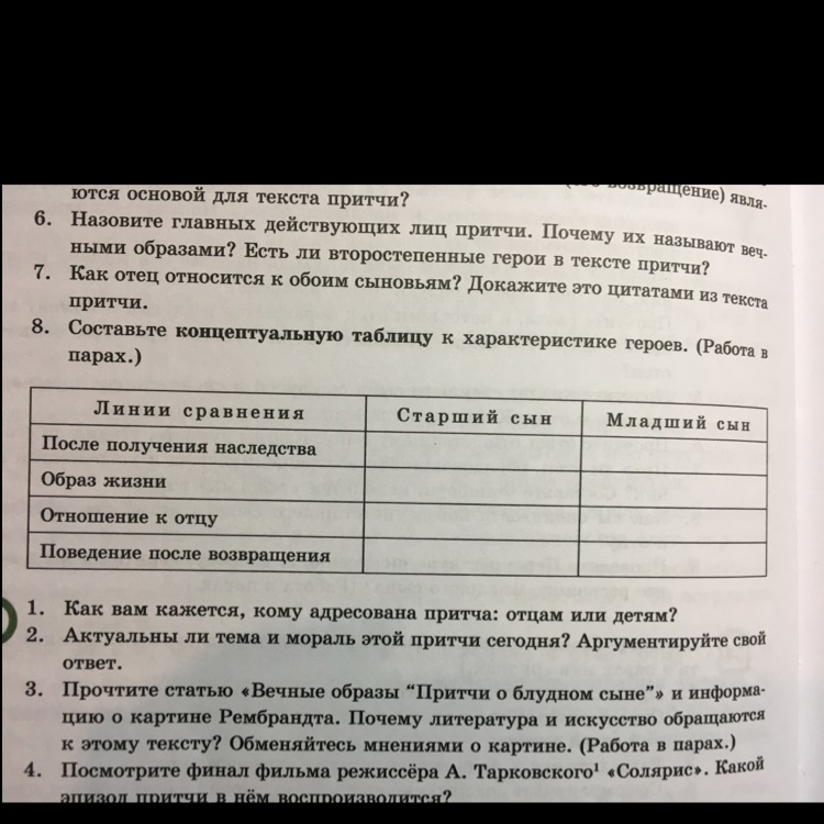 Отношение к отцу старший сын почитает отца.Младший сын ненавидит его.