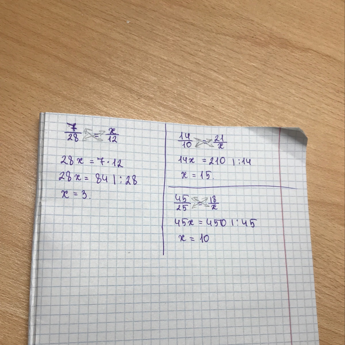 Смотри, тут все просто! Надо перемножить по диагонали известную пару, а и поделить на число, которое в паре с х.