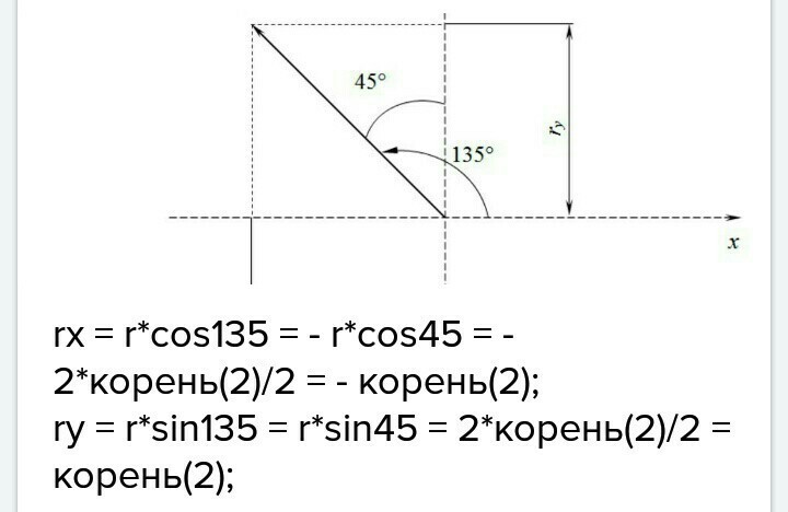 Точка движется в плоскости xoy вектор r модуль которого равен 2 , направлен под углом 135 градусов к оси x. Чему равны проекции вектора r на оси x и y?