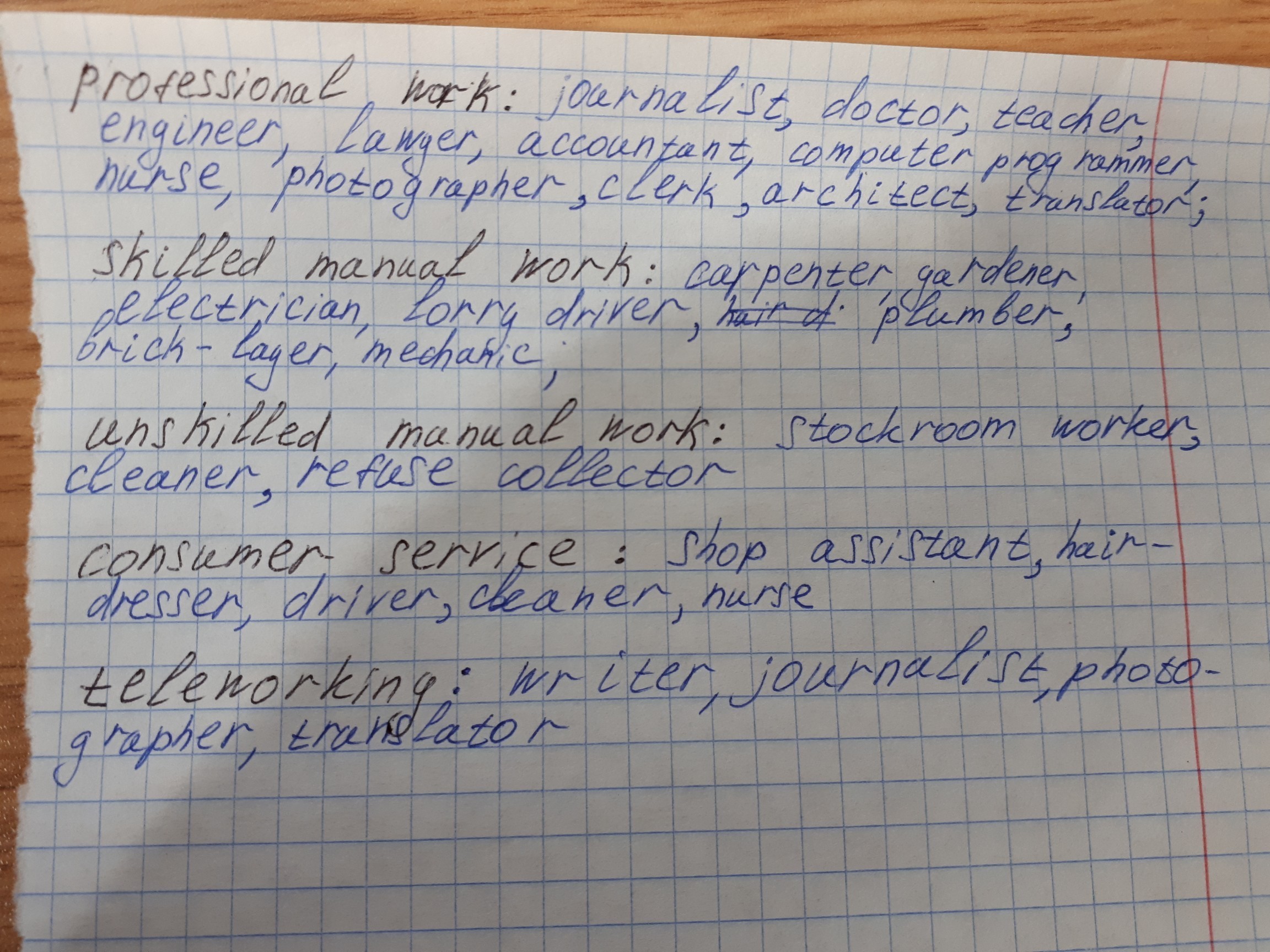 В некоторых пунктах указаны повторяющиеся профессии, как это и сказано в задании