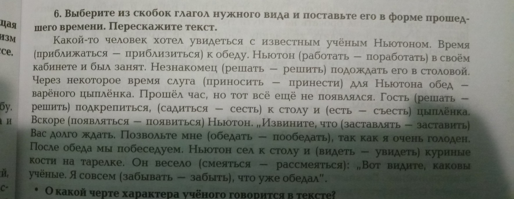 Время приблизилось к обеду. Ньютон работал в своём кабинете и был занят. Незнакомец решил подождать его в столовой. Через некоторое время слуга принёс для Ньютона обед -варёного цыплёнка. Гость решил подкрепиться, сел к столу и съел цыплёнка. «Извините, что заставил вас долго ждать. Позвольте мне пообедать, так как я очень голоден. Ньютон сел к столу и увидел куриные кости на тарелке. Он весело рассмеялся: «Вот видите , каковы ученые . С совсем забыл , что уже обедал»