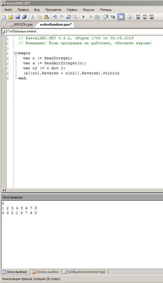 Реверс массива – это перестановка элементов в обратном порядке: меняются местами первый и последний элементы, второй и предпоследний и т.д. Напишите программу, которая выполняет реверс двух половин массива по отдельности.