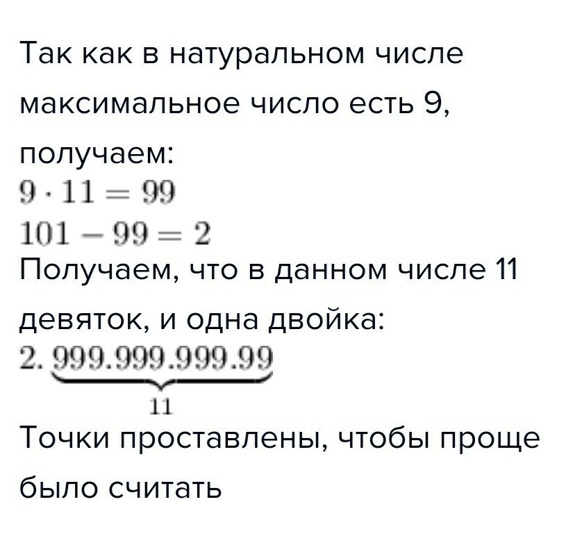 Укажите наименьшее натуральное число , сумма цифр которого равна 101