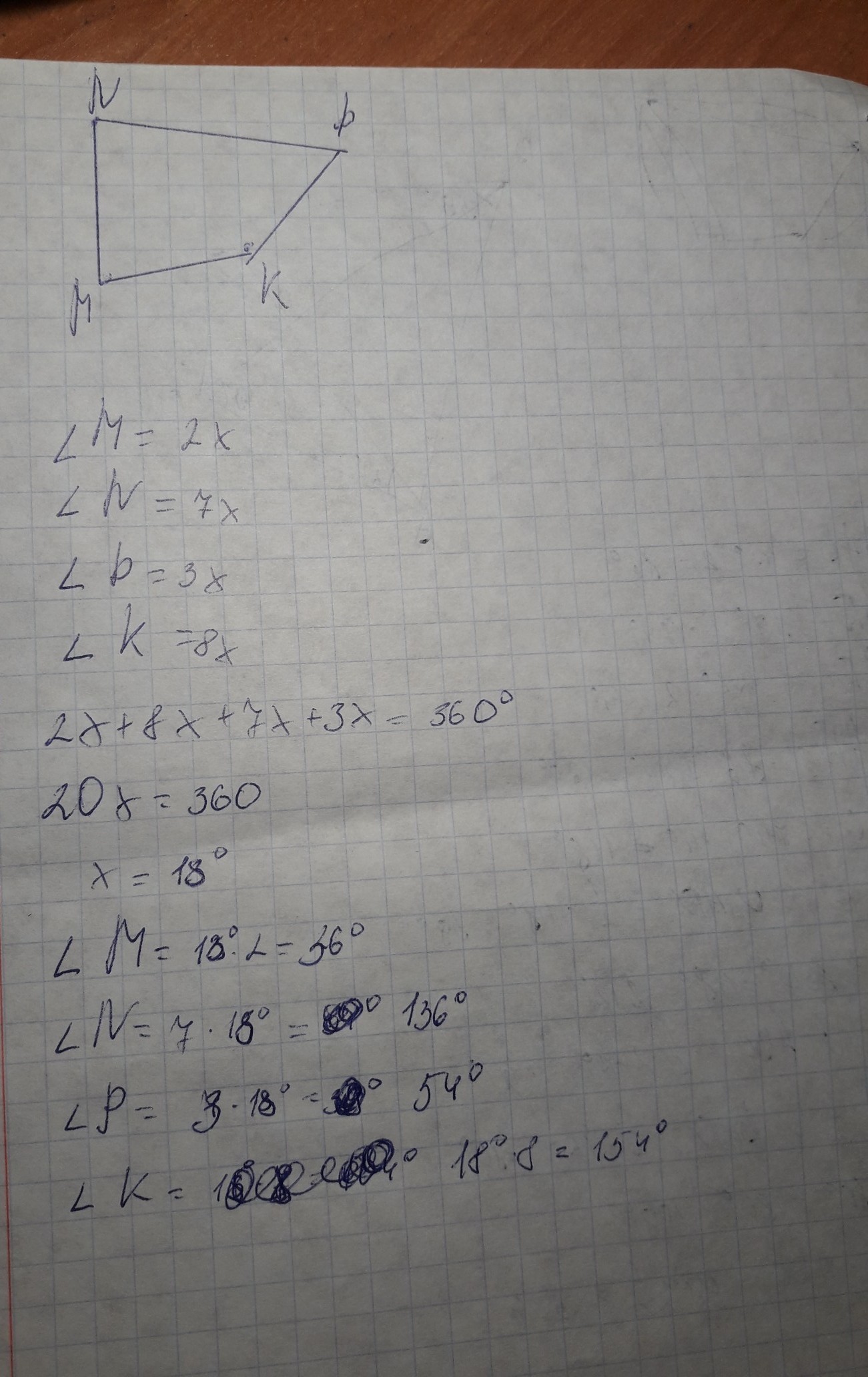 только угол К 144 градуса