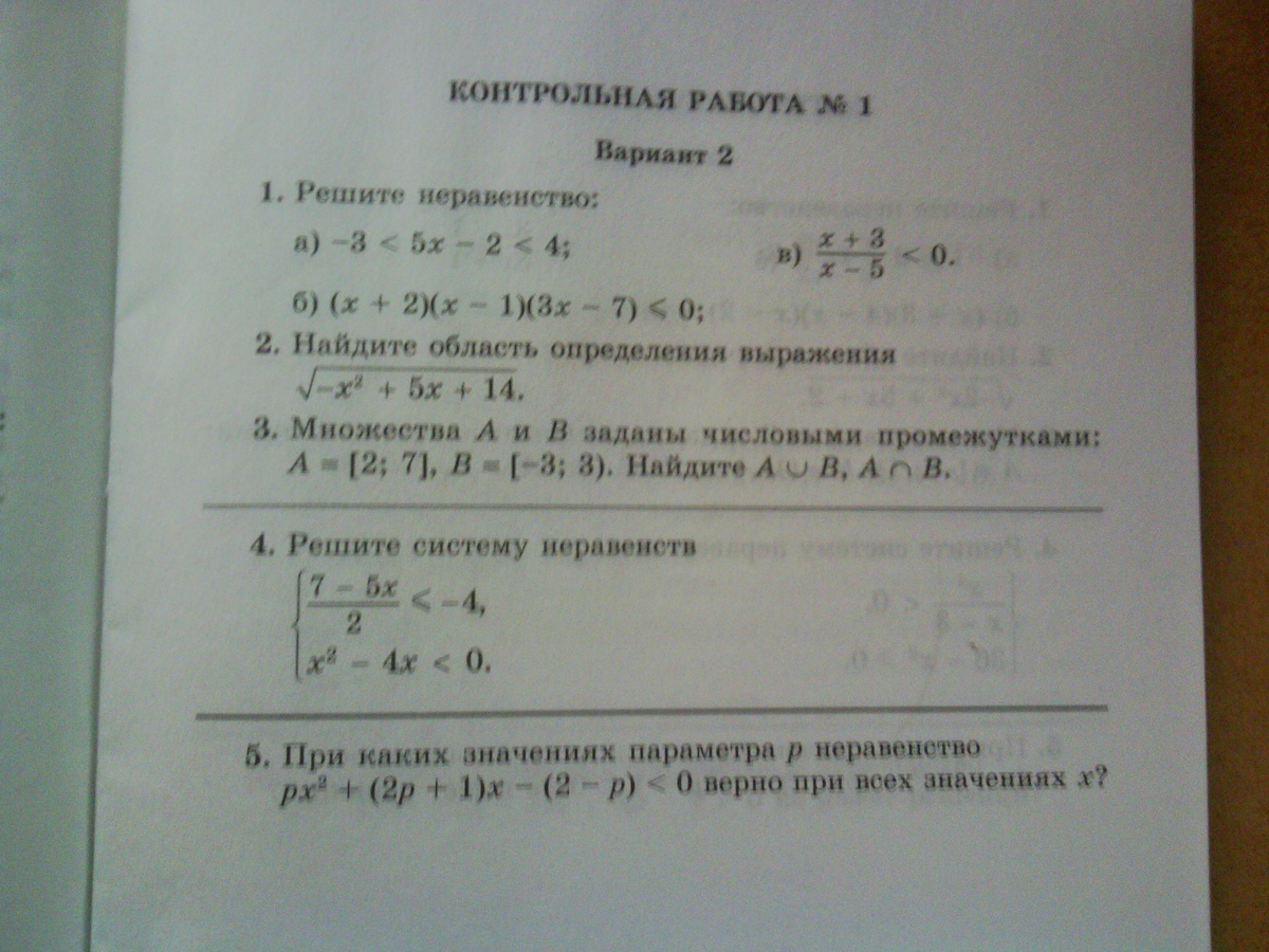 a) -3<5x-2<4 b)x1=-2 в)x1=5