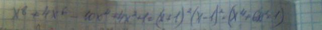 СРОЧНО! X^8+4x^6-10x^4+4x^2+1=0 Мне не понятно,откуда мы берем двучлен, на который делим(это решение было в классе-учитель просто взял его без всяких объяснений