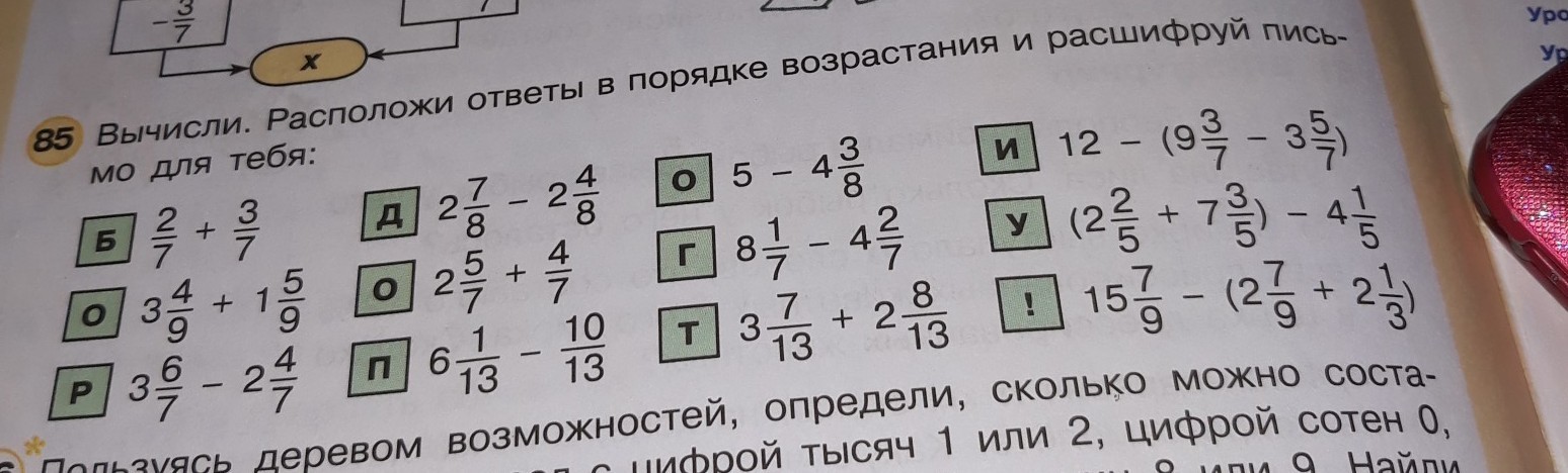 Б=5/7 О=5 Р=1*2/7 Д=3/8 О=3*2/7 П=5*4/13 О =5/8 Г=3*6/7 Т=6*2/13 И=6*2/7 У=5*4/5 !=10*6/9 Ответ:Доброго пути!