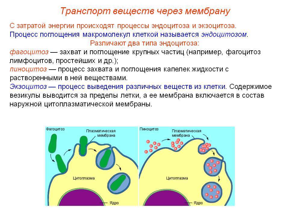 поглощение веществ (путем окружения) выростами плазматической мембраны с образованием окруженных мембраной пузырьков. Бывает двух видов: