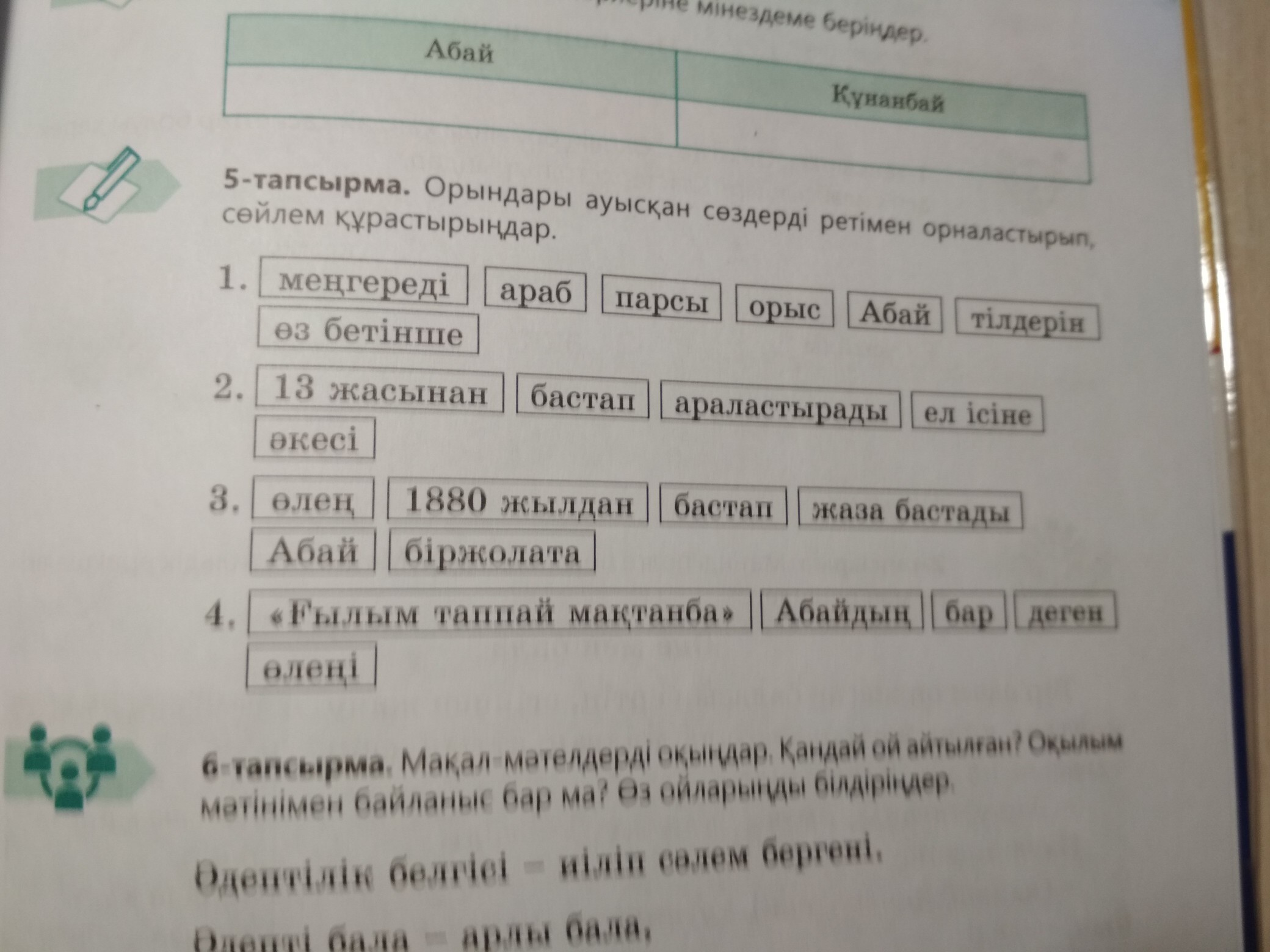 4)Абайдың өлеңі "Ғылым таппам мақтанба" деген бар.