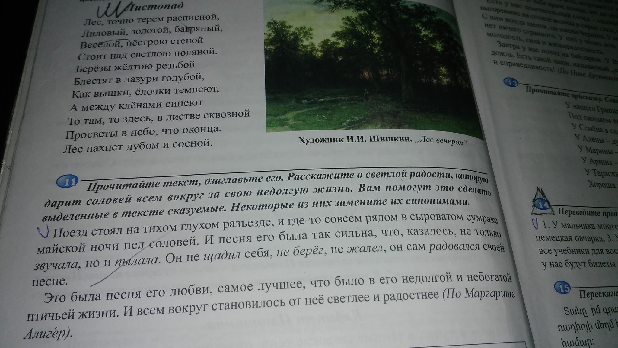Песня соловья.(я озаглавила) А ответ на вопрос это предпоследнее и последнее предложения. Желаю 5+.