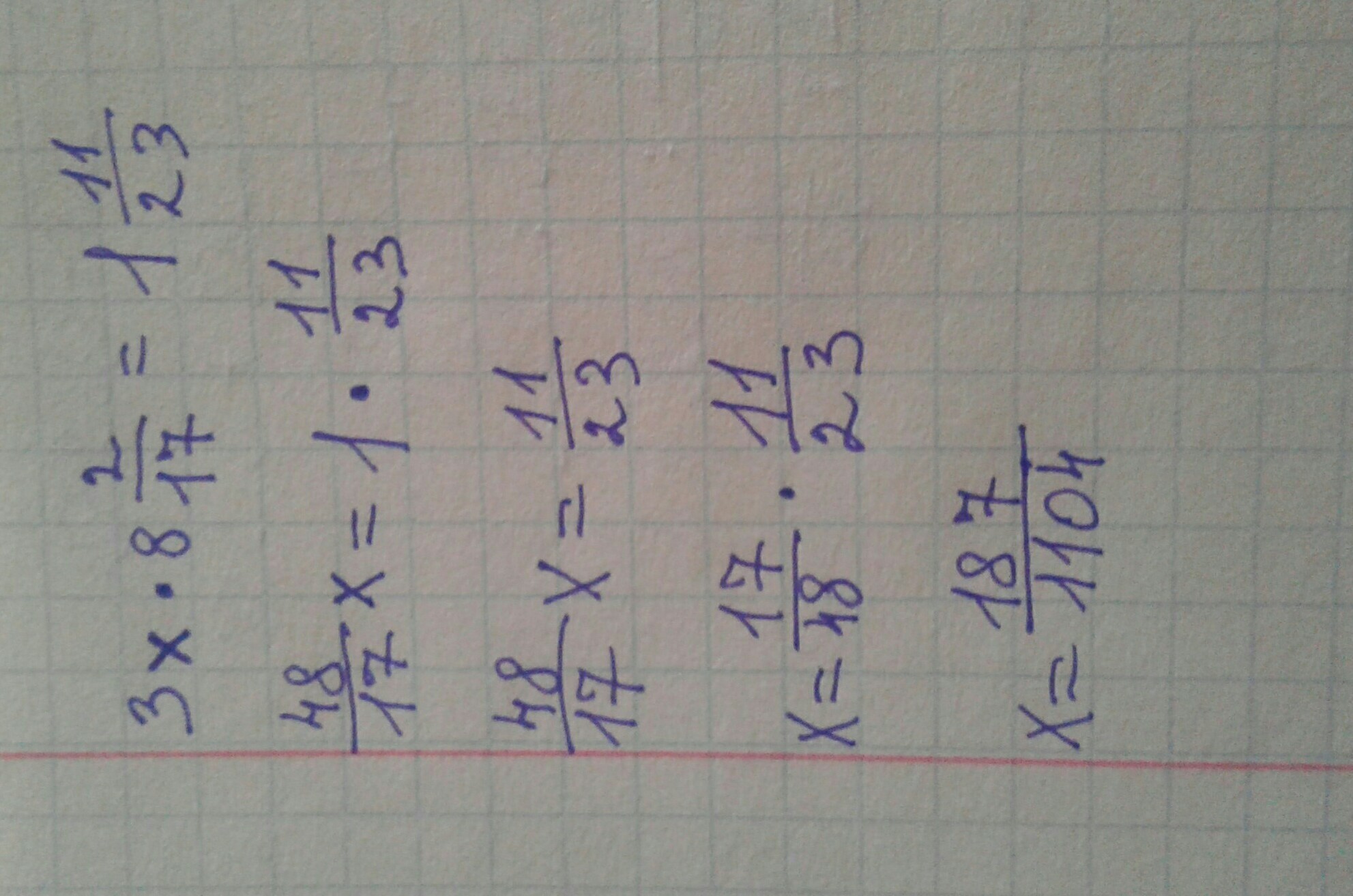 3Х = 1 11/23 : 8 2/17 = 34/23 : 138/17 = (34*17)/(138*23) = 578/3174 = 173/950