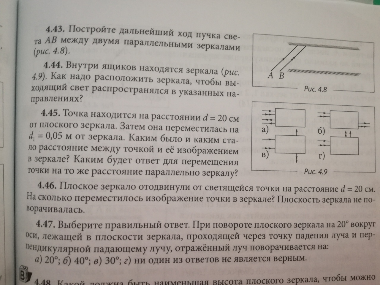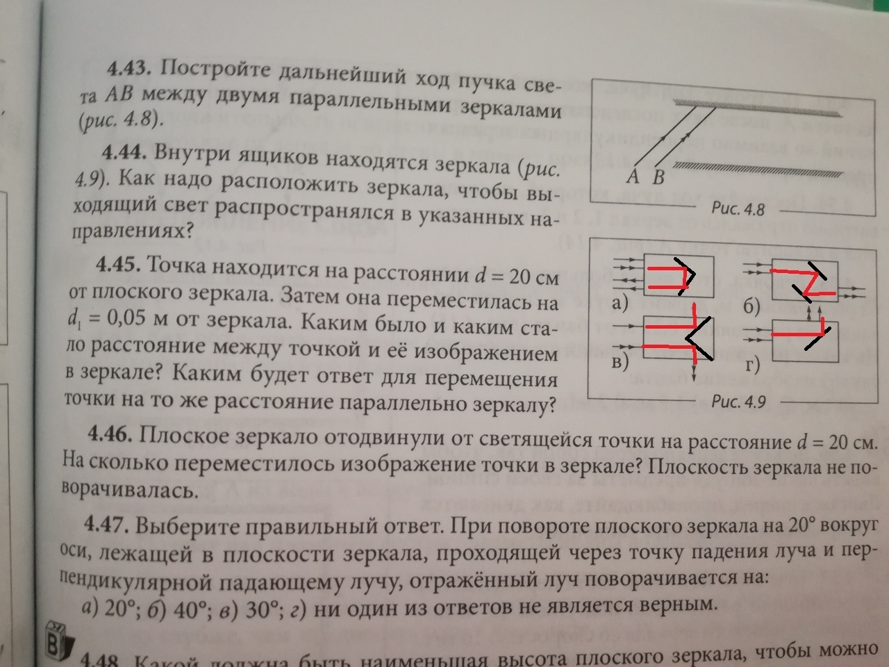 4.44 Чёрным цветом зеркала, красным - ход луча в ящике. (Смотри приложение)
