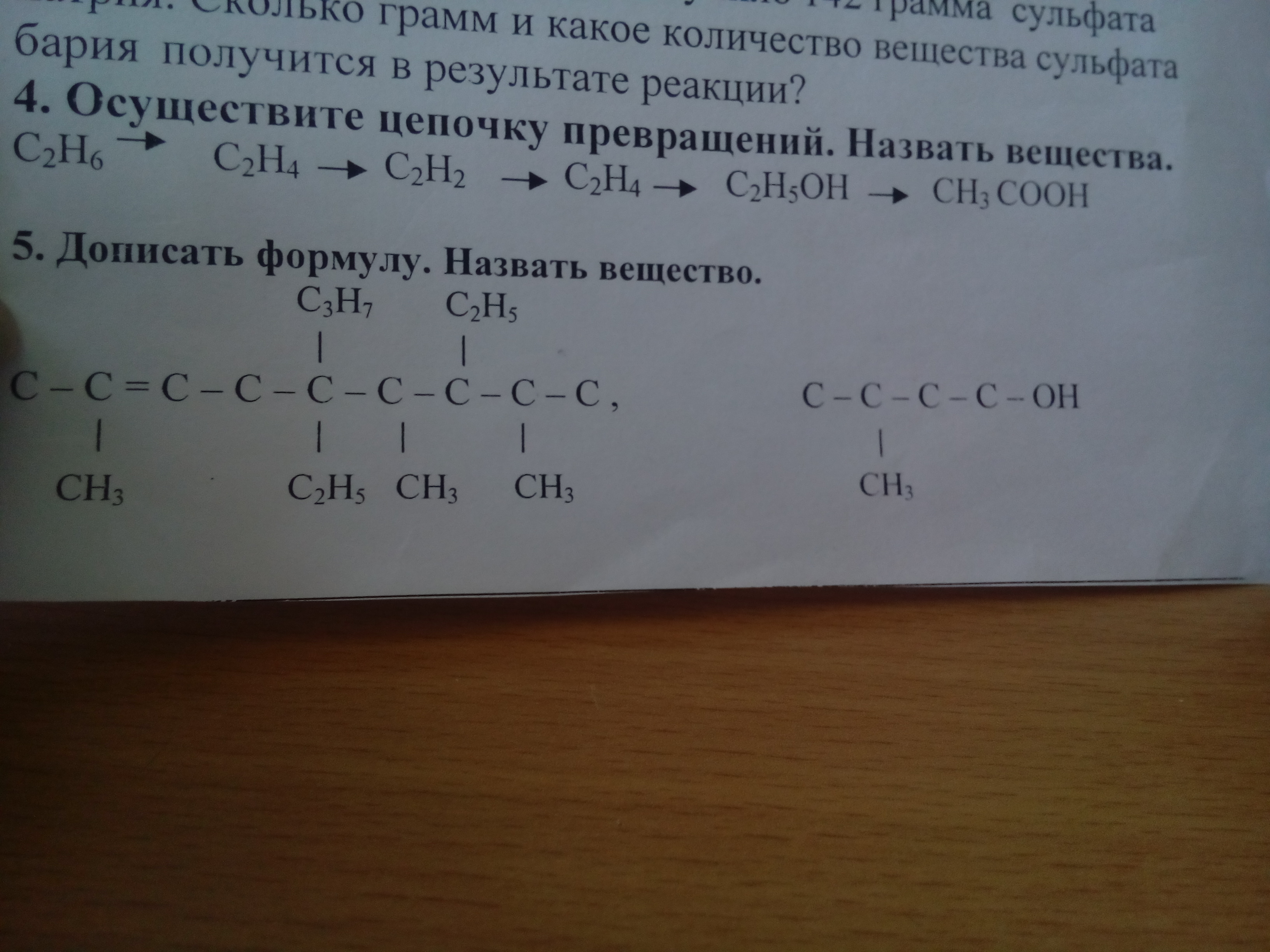 4) СH3-CH3 -> CH2=CH2 + H2 (t, kat) (этан, этен, водород)