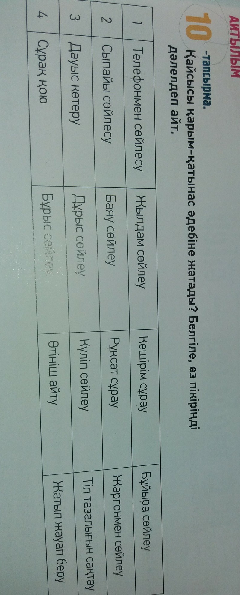 Сыпайы сөйлеу Дұрыс сөйлеу Рұқсат сұрау Тіл тазалығын сақтау