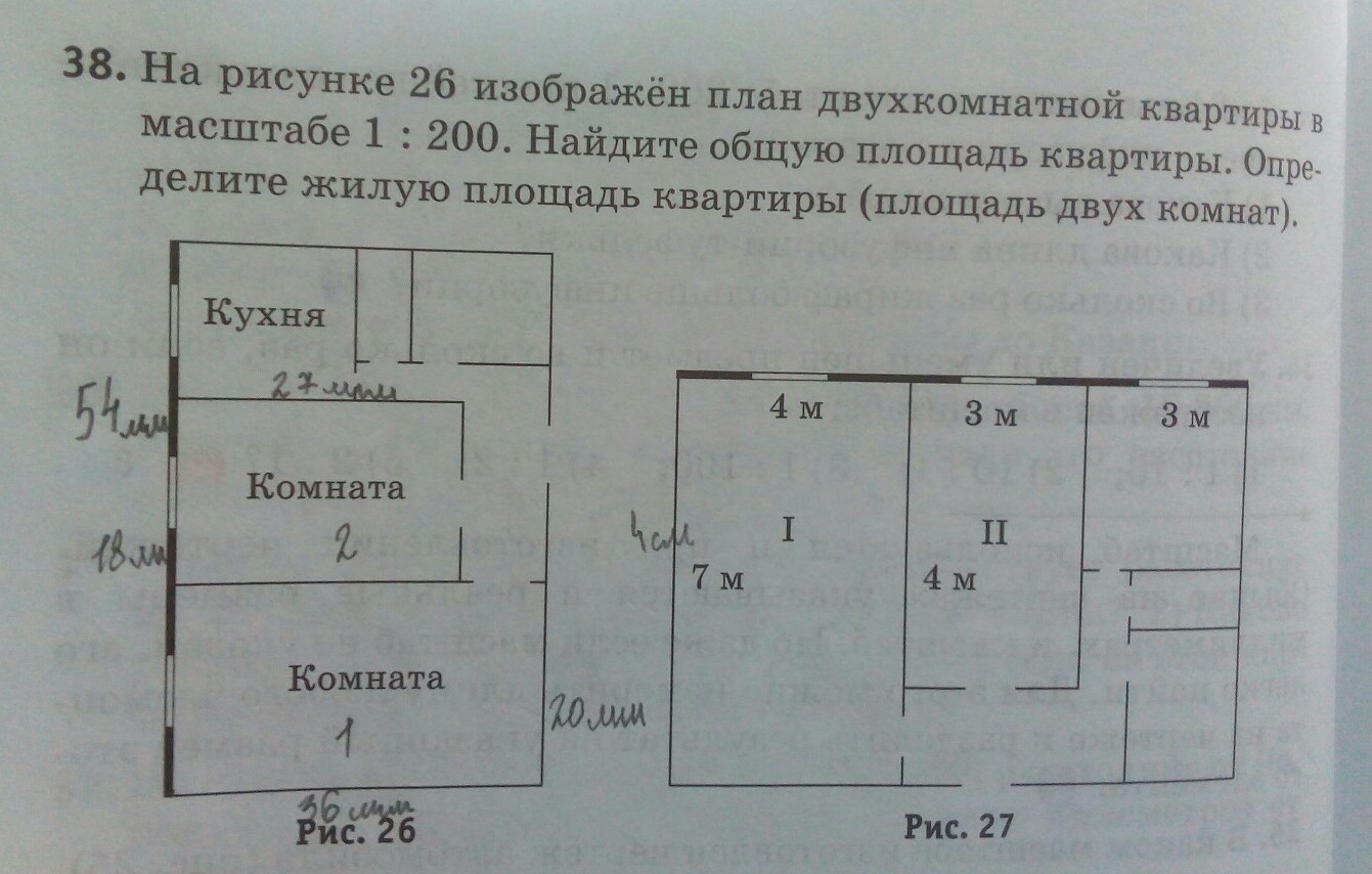 1) 2,7*200=540 см = 5,4 м длина второй комнаты