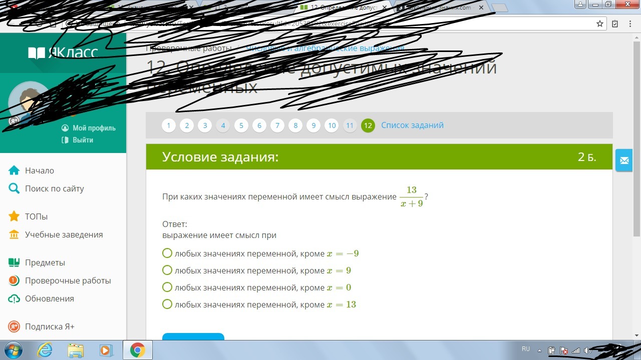 все кроме -9 , т.к знаменатель не может равняться 0 ,если знаменатель равен нулю это равносильно делить на ноль , но на ноль делить нельзя