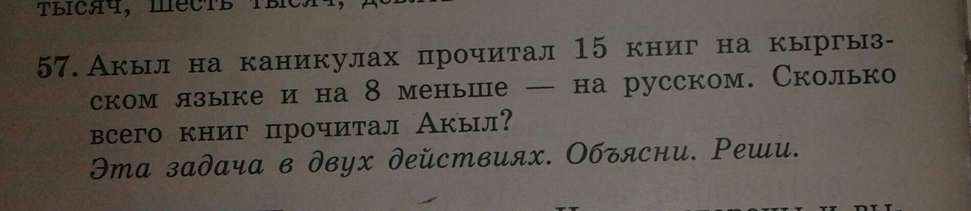 1. 15-8=7(книг)-Акыл прочитал на русском языке.