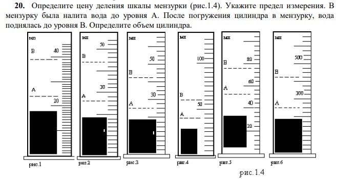20. Определите цену деления шкалы мензурки (рис.1.4). Укажите предел измерения. В