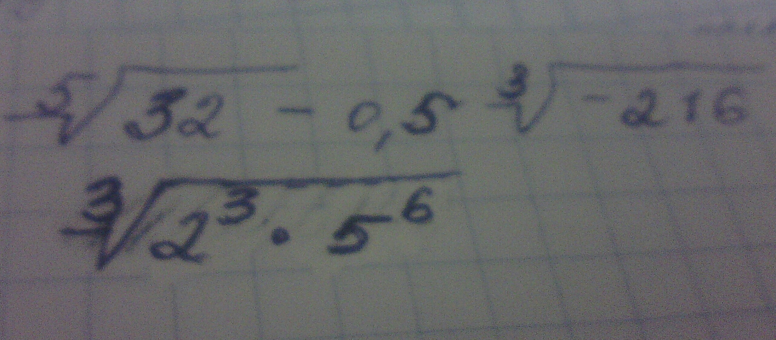 1) 5√32 - 0,5 * ✓-216 = 2 - 0,5 = 1,5 - 6 = -4,5