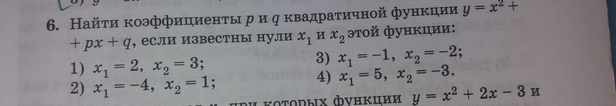 1) Подставляя значения x=2 и x=3 в выражение y=x²+p*x+q, получаем систему уравнений: