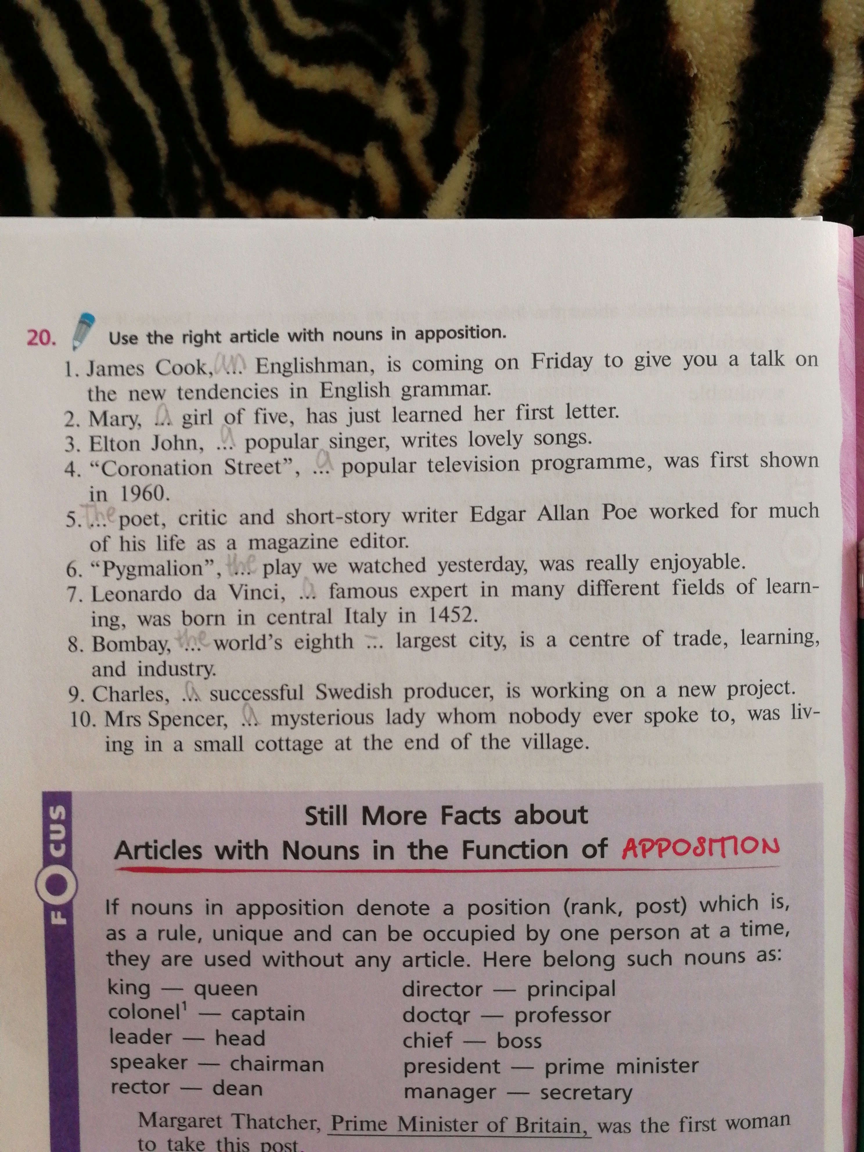 Джеймс Кук,. Англичанин, ccming в пятницу, чтобы дать вам алкоголь на новые тенденции в английской грамматике 2 Мэри, и девочка из пяти, ГЭС только что узнала ее первый lette: 3. Элтон Джон. ropular певец, пишет прекрасные песни. Популярная телевизионная программа «Coronat.on Street» 4 была в 1960 году. S. он поэт, критик и писатель-съемщик Эдгар Аллан По работал в журнале своего журнала. Игра «Eygmalion», которую мы наблюдали, далека, была действительно enjnyable. Леонардо да Винчи, известный специалист во многих разных областях изучения, родился в центральной Италии в 1452 году. 8. Бомбей, восьмой город мира, является центром торговли , обучения и промышленности. 9. Чарльз, успешный шведский преподаватель, работает над новым проектом. 10. Миссис Спенсер, таинственная дама, с которой никто никогда не разговаривал, жил в маленьком коттедже в конце виллы.